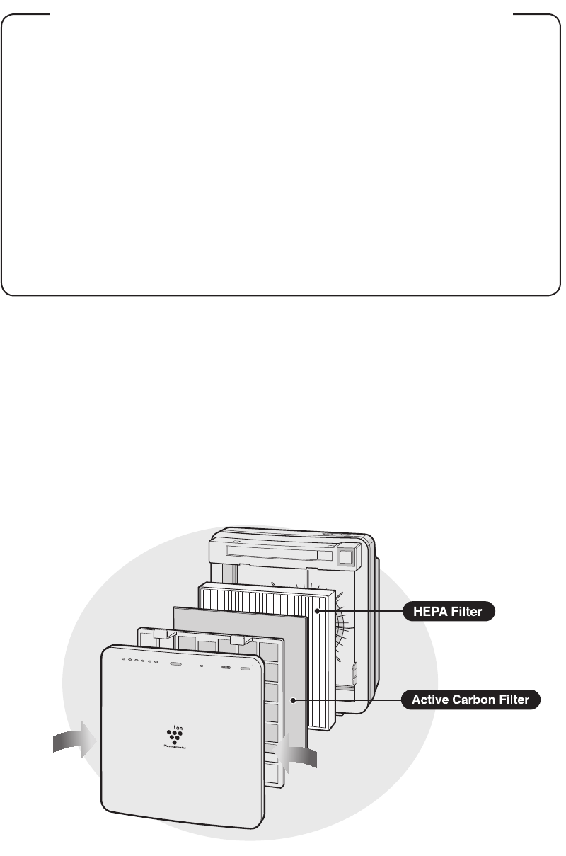 an Active Carbon Filter (deodorization lter) and a HEPA Filter (dust collec-