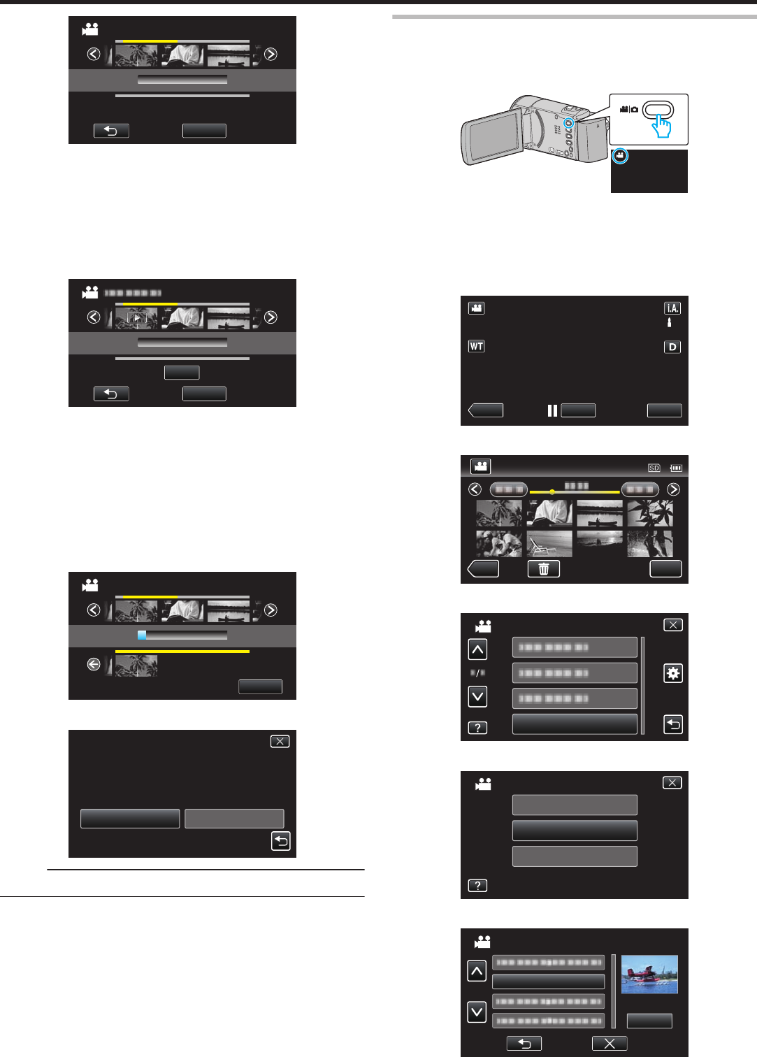Tap 0/1 or move the zoom lever to display the previous/next video.
