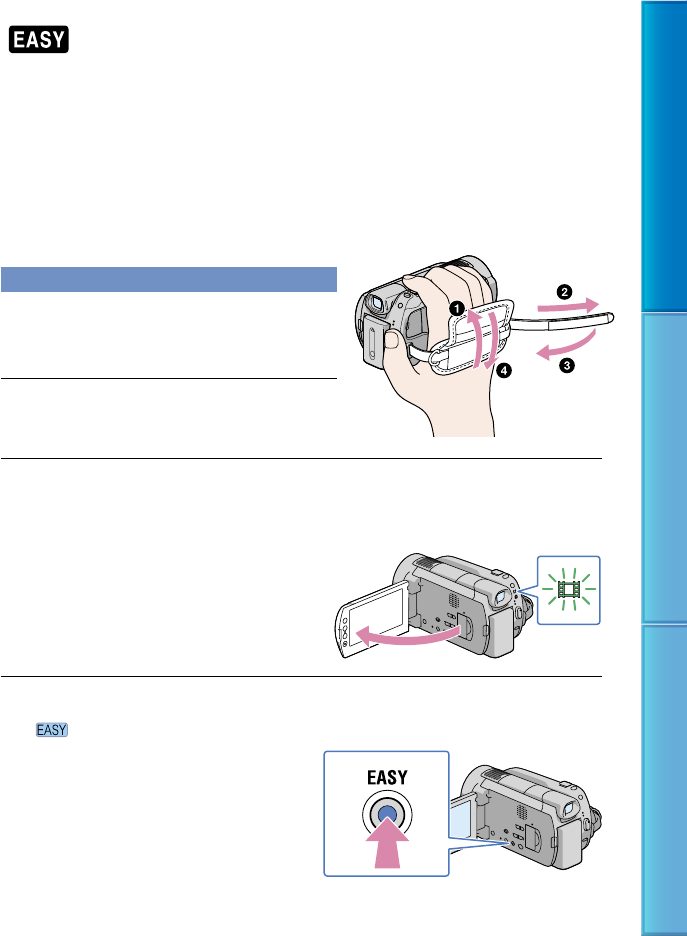 Simply press EASY. You can record or play movies and photos easily (Easy Handycam