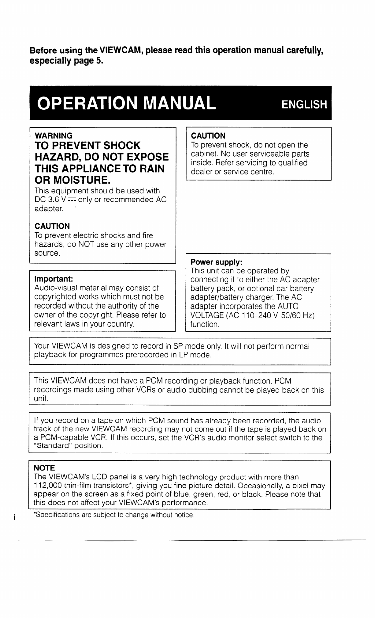 track of the new VIEWCAM recording may not come out if the tape is played back on