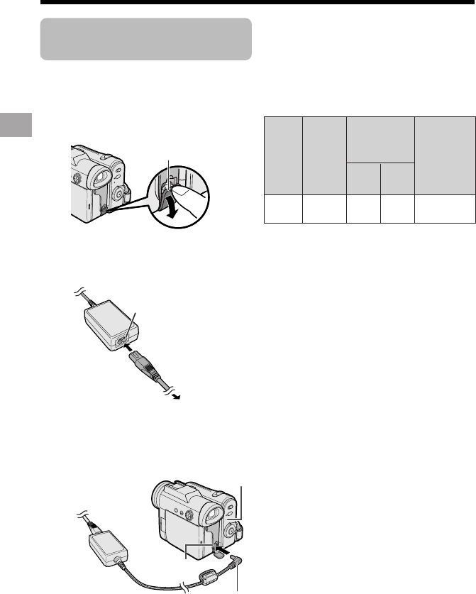 • The battery pack and AC adapter become