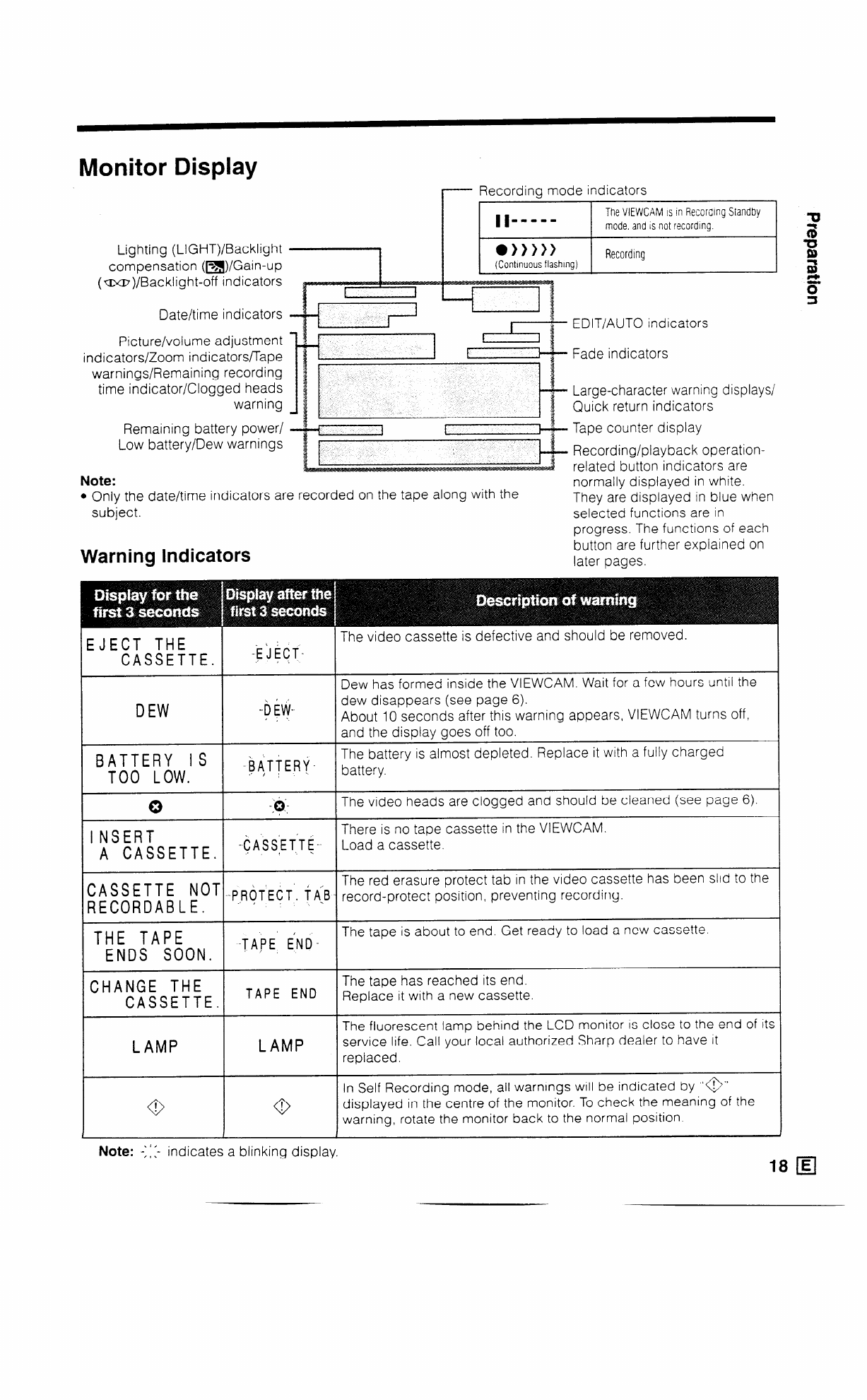 - Recording mode indicators