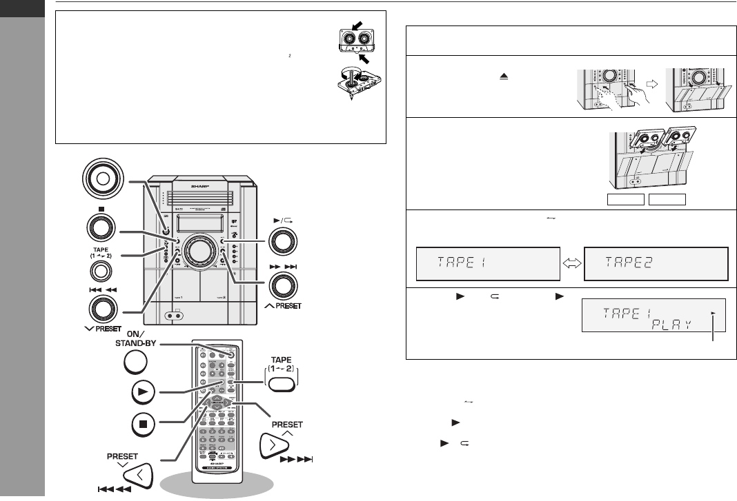 TAPE (1 2) Taste (Hauptgerät und Fernbedienung): Das Gerät