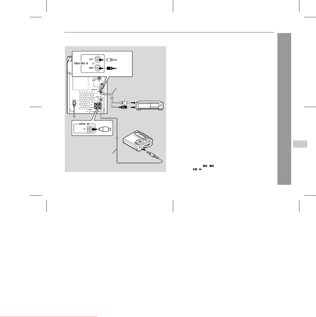4 Put the MiniDisc recorder, etc. in the recording mode.