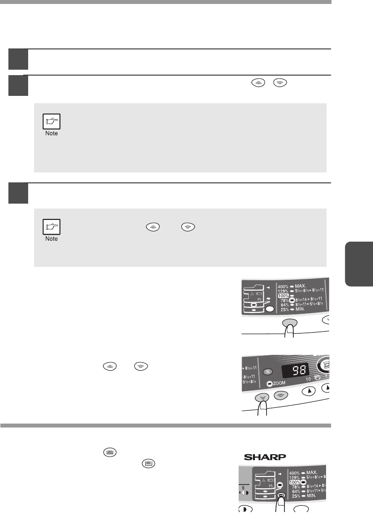 Use the copy ratio selector key and/or ZOOM ( , ) keys to