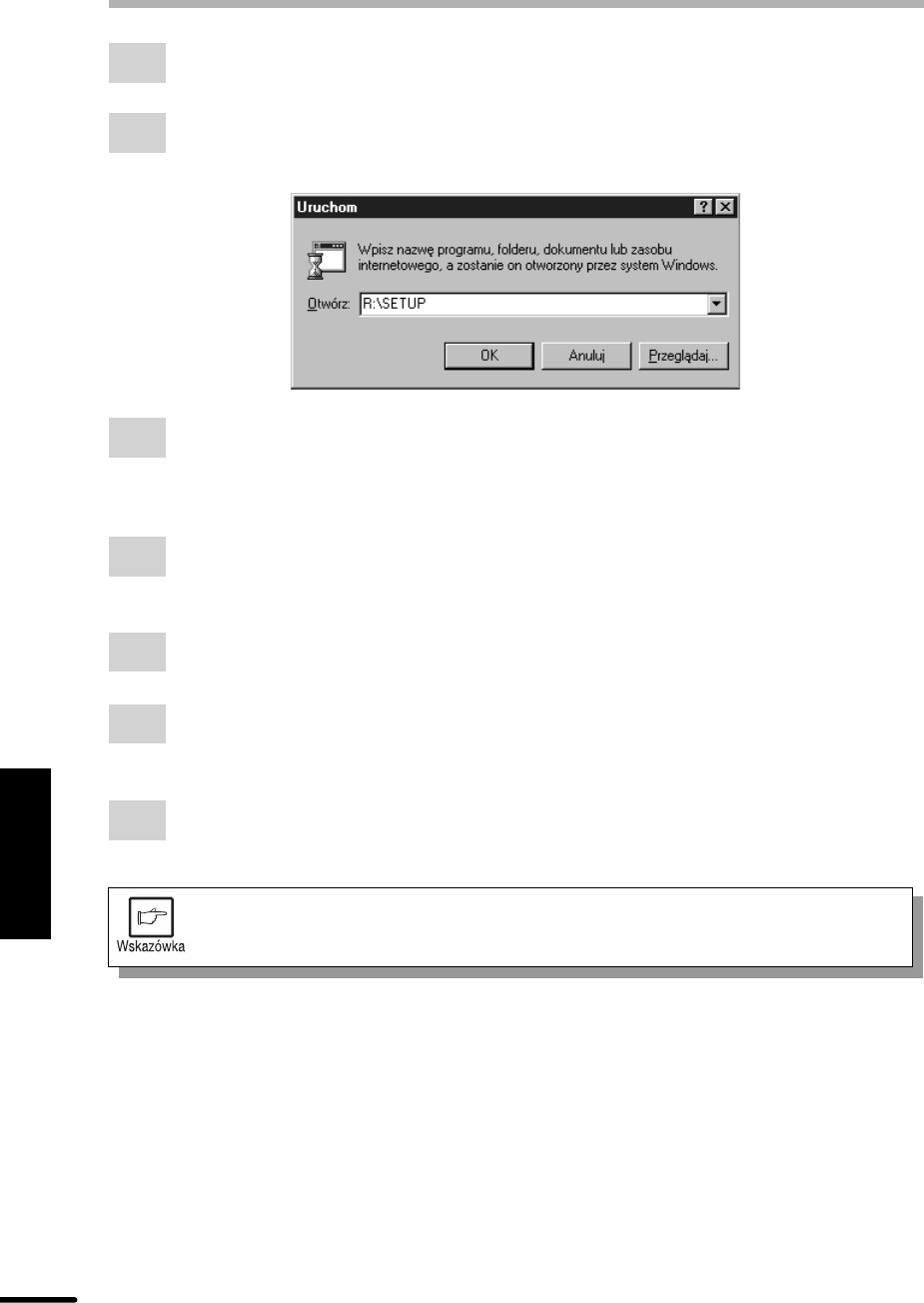 Gdy pojawi siê okienko pokazane poni¿ej, wpisz R:\SETUP (o ile litera R odpowiada
