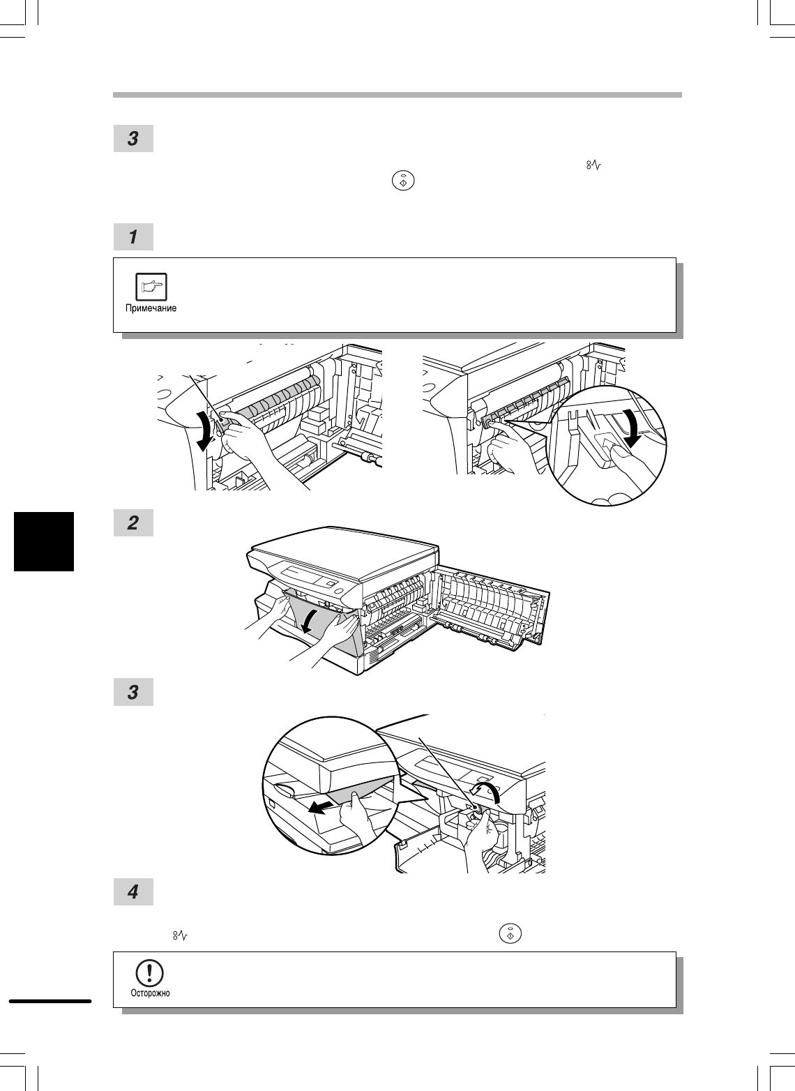 Поднимите рычаг освобождения блока термозакрепления, закройте переднюю