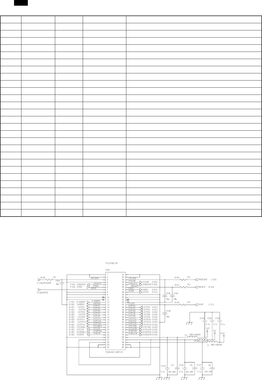The FAX PWB uses signals in Table A, and the PCL PWB uses signals in Table B.