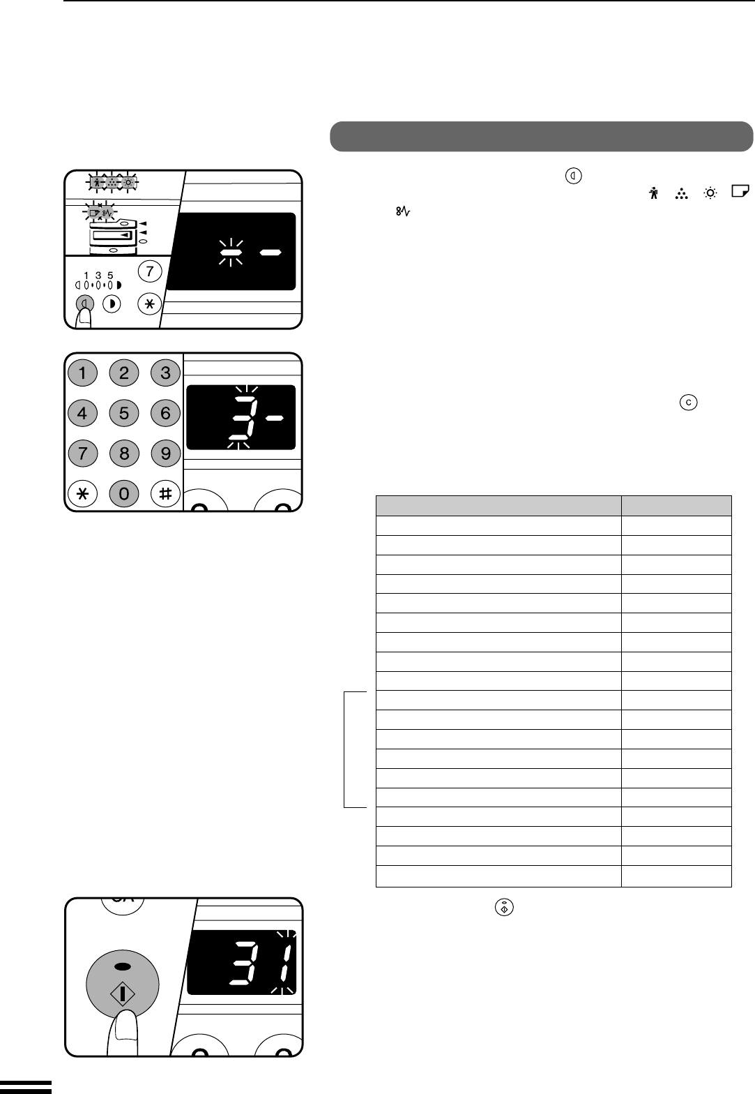 For programs 1 to 9 and 16 to 19, the entered program number will be