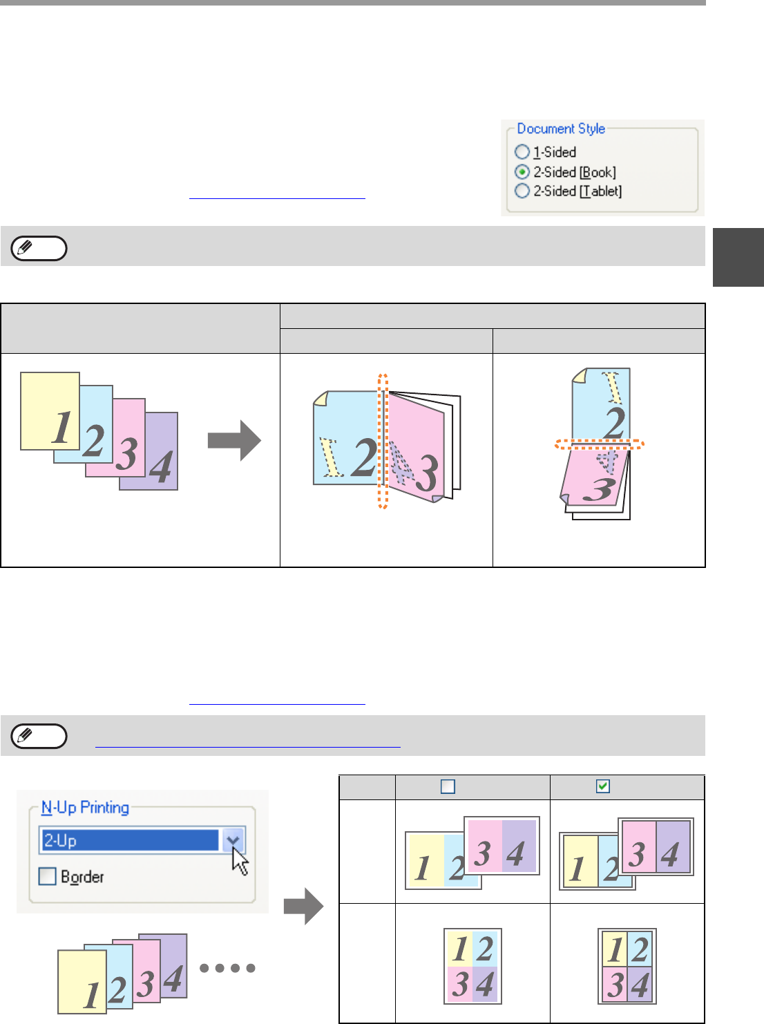 To use this function, open the printer driver setup screen and select [2-Up] or [4-Up] for "N-Up Printing" on the [Main]