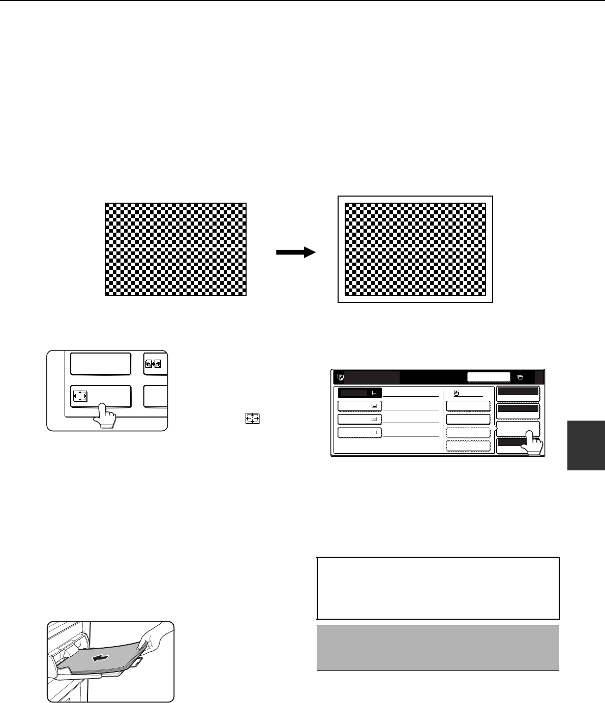 In other copy modes, image loss will occur along the copy edges. When the 11" x 17" (A3) FULL-BLEED function is
