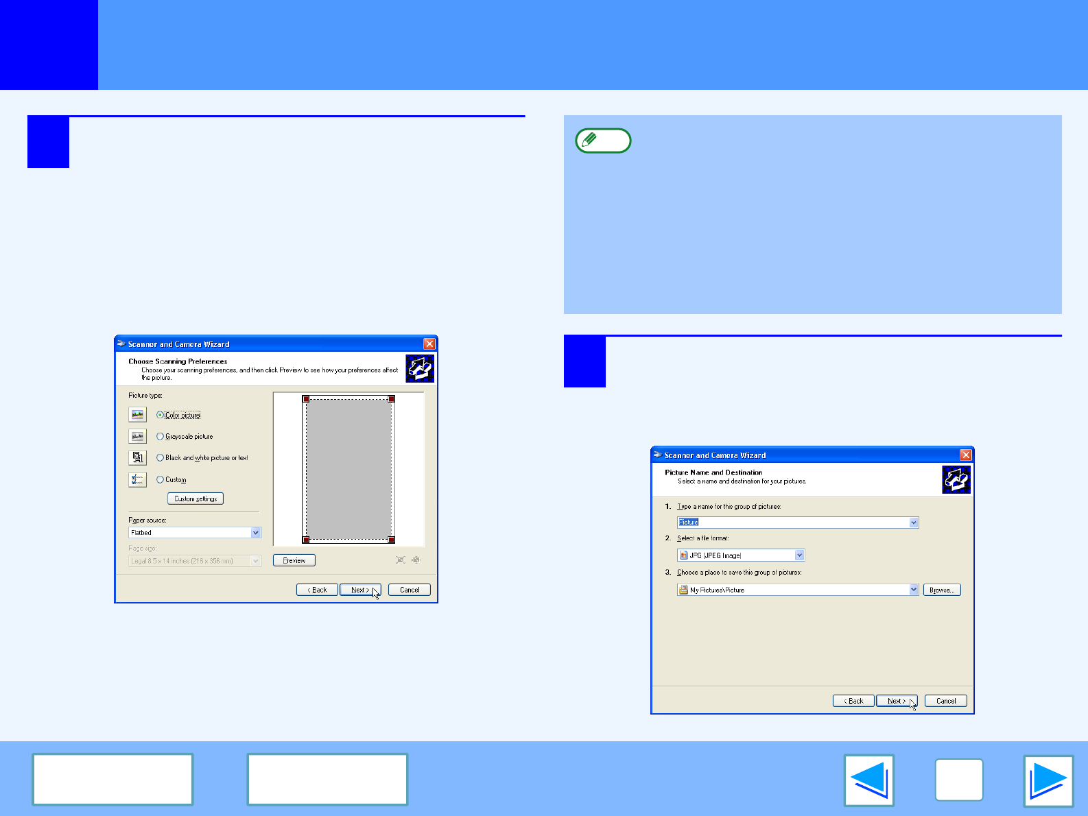 Scanning from the "Scanner and Camera Wizard" (Windows XP)