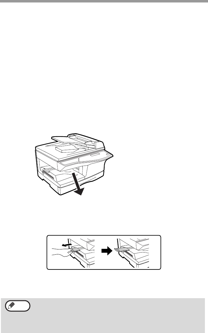 When copying onto paper larger than 8-1/2" x 11" size, pull out the paper output tray