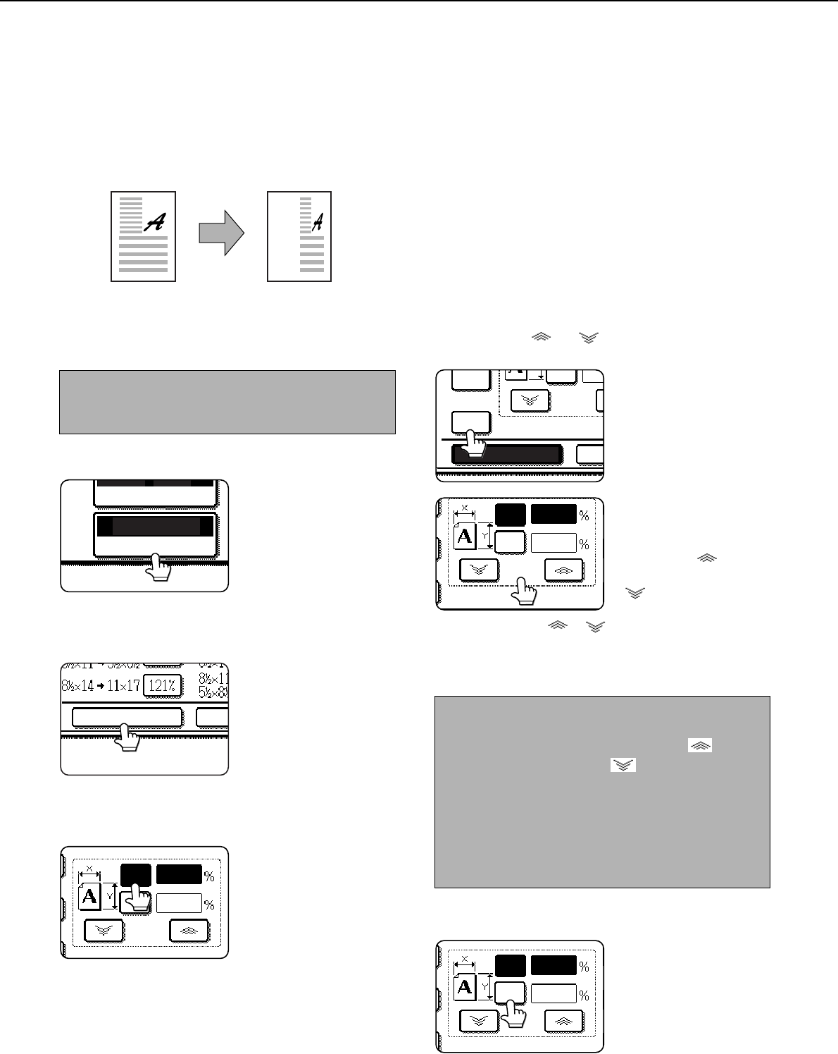 The XY ZOOM feature allows the horizontal and vertical copy ratios to be changed separately. The ratios can be set