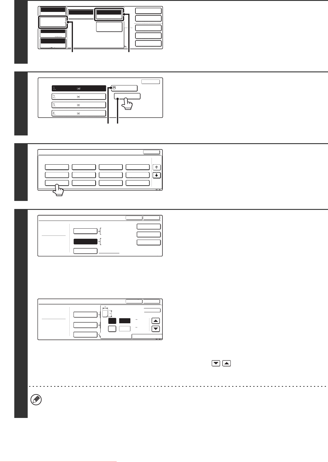 • When [Tab Paper] is selected, check the tab paper size, or touch the [Auto-Inch] key or the [Auto-AB] key. When