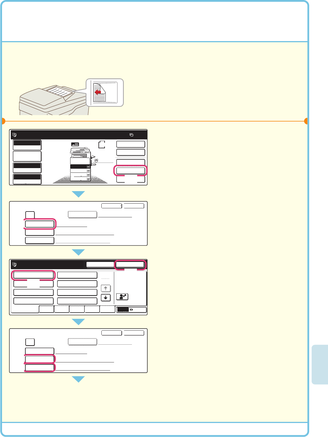 As an example, the procedure for storing a scanned image in the main folder when using the copy function is