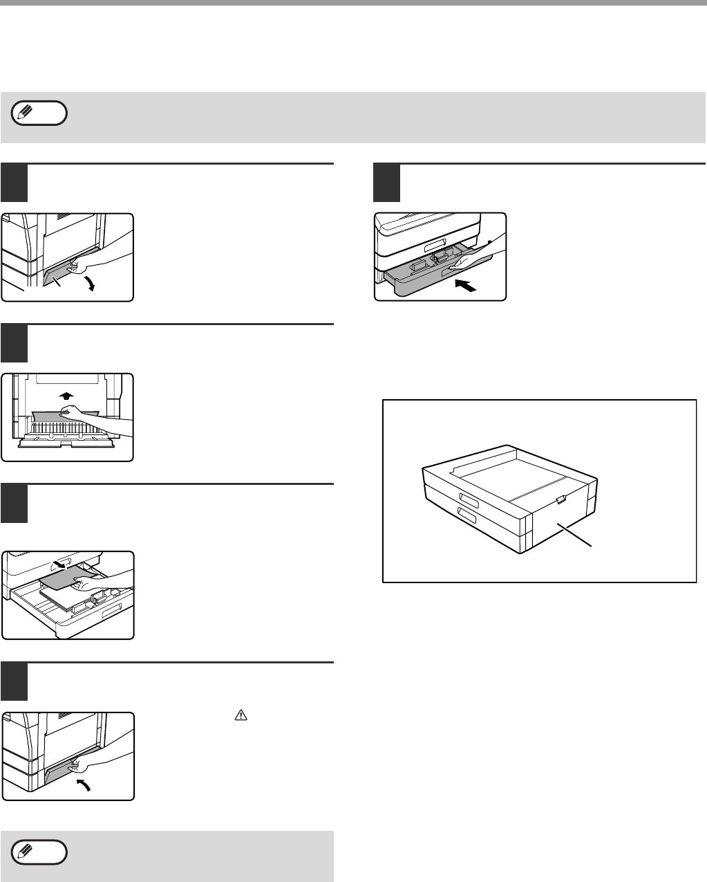 • Also use the following procedure to remove misfeeds that occur in the 250-sheet paper feed unit and the 2 x