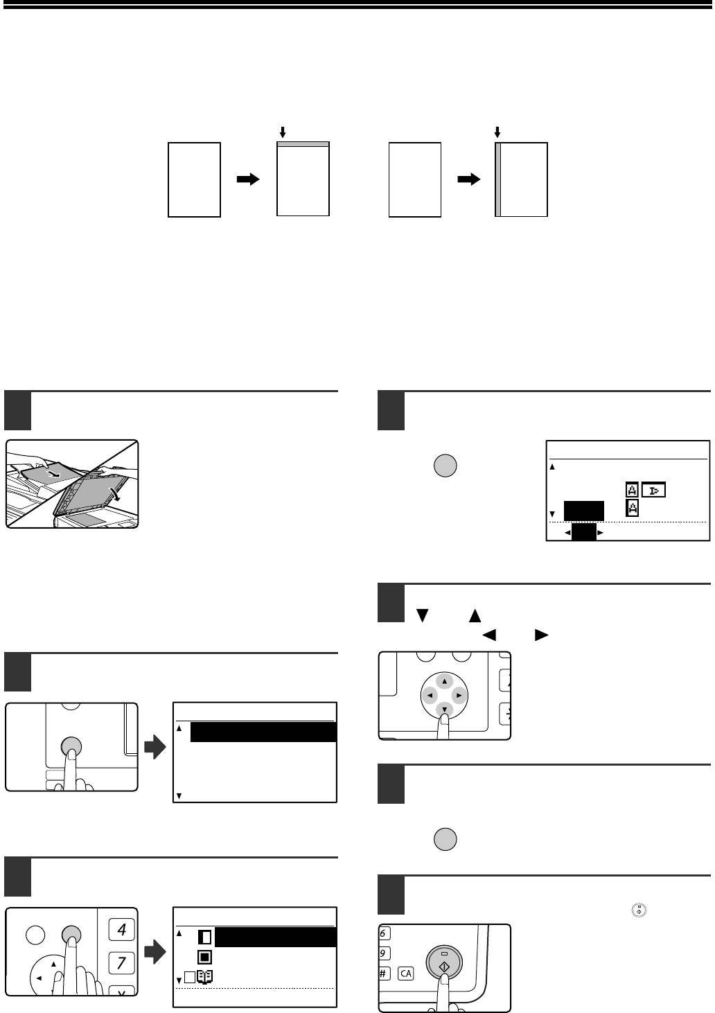 • When making two-sided copies, a margin is created at the selected edge on the front side of the paper, and a