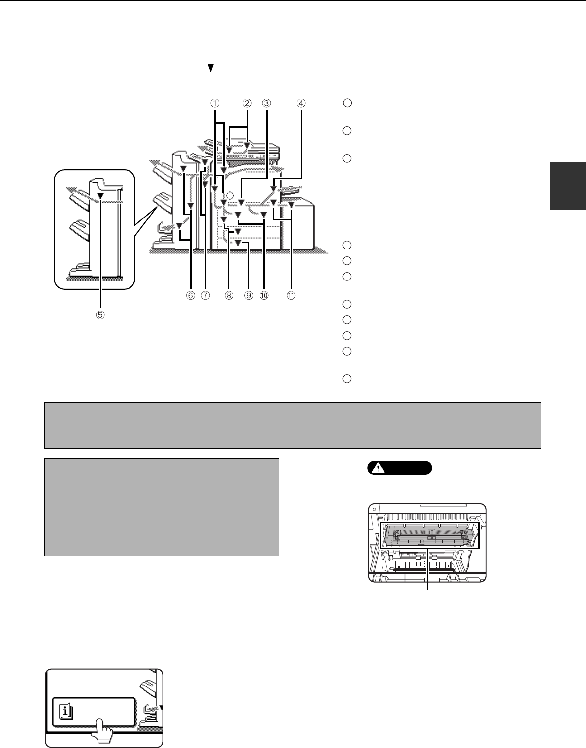 misfeed locations are indicated with " " shown in the illustration below. The page numbers for detailed information