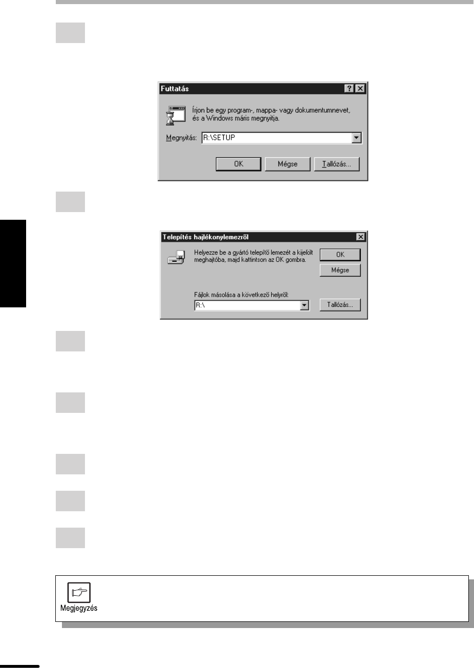 a telepítő CD-t a meghajtóba. Gépelje be az R:\ (ha a CD-ROM R jelű) szöveget,