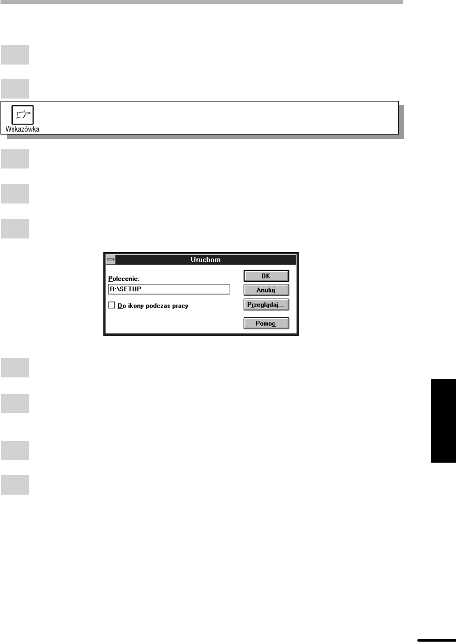 Wpisz R:\SETUP (o ile litera R odpowiada napêdowi CD-ROM z p³yt¹ ze sterownikiem),