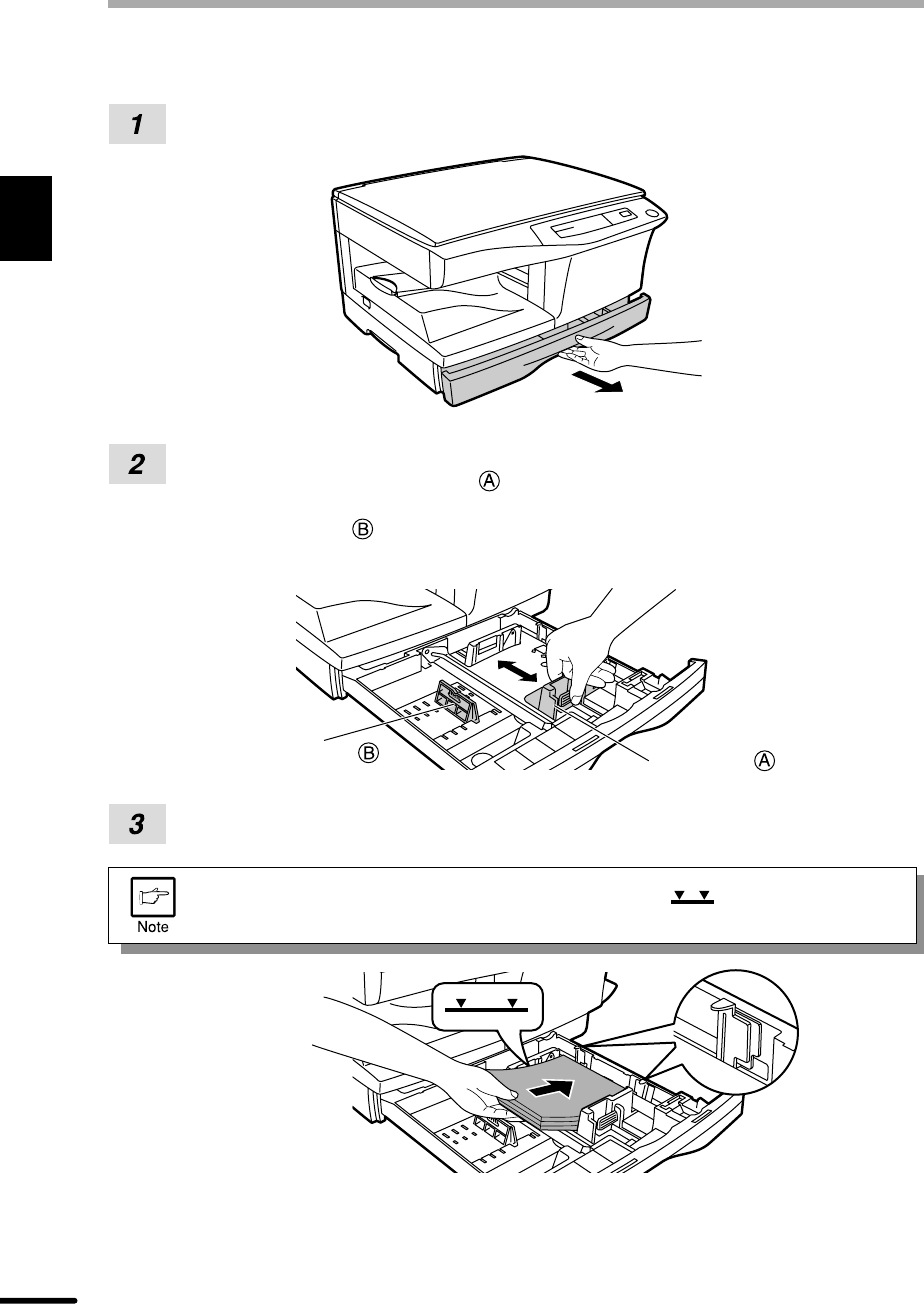 Adjust the paper guides on the paper tray to the copy paper width and length.