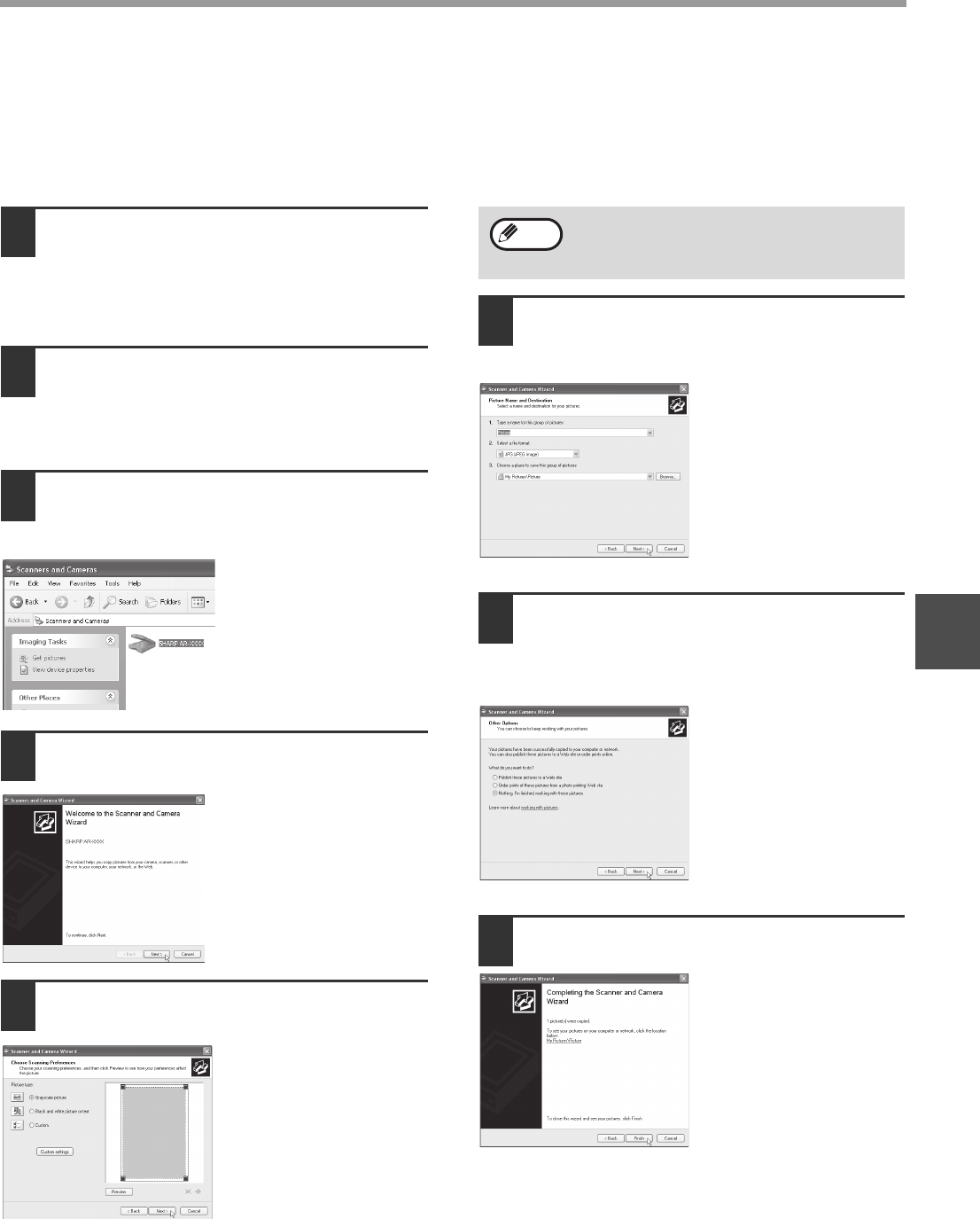 The procedure for scanning with the "Scanner and Camera Wizard" in Windows XP is explained here. The "Scanner