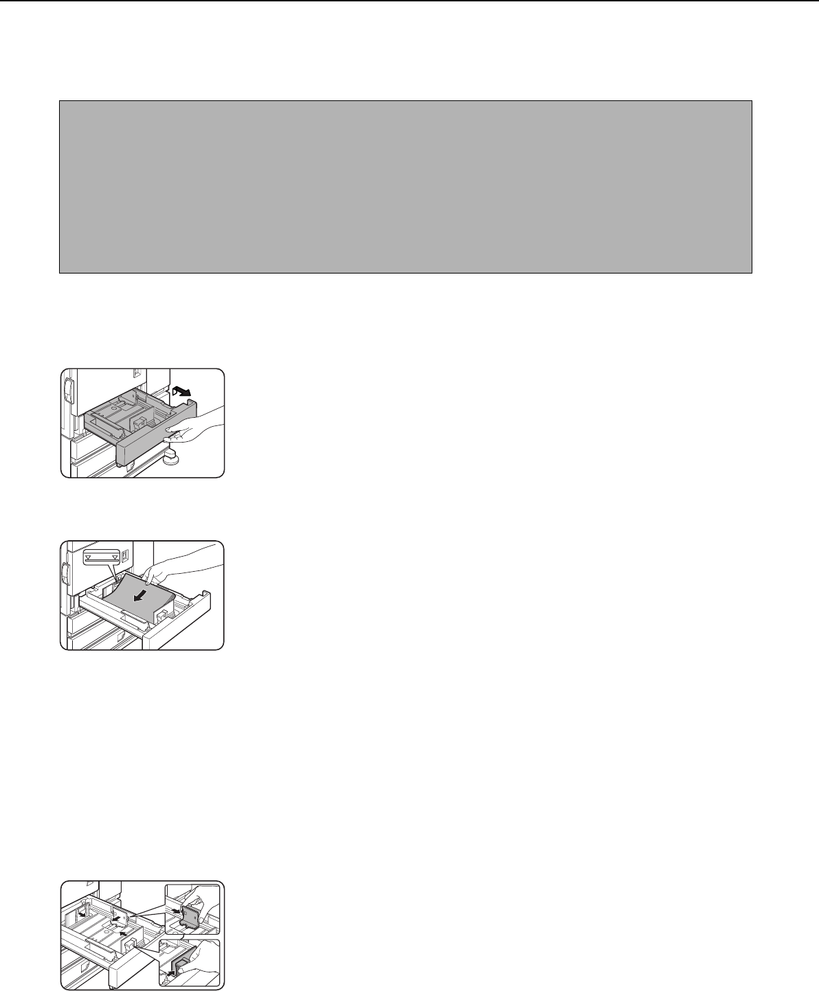For paper tray 1, A4, B5 or 8-1/2" x 11" size paper can be set. Use the following procedure to change the size as