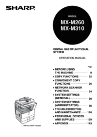 We providing 2 pdf manuals Sharp MX-M260 for download free by document types: Owner's Manual, Specifications