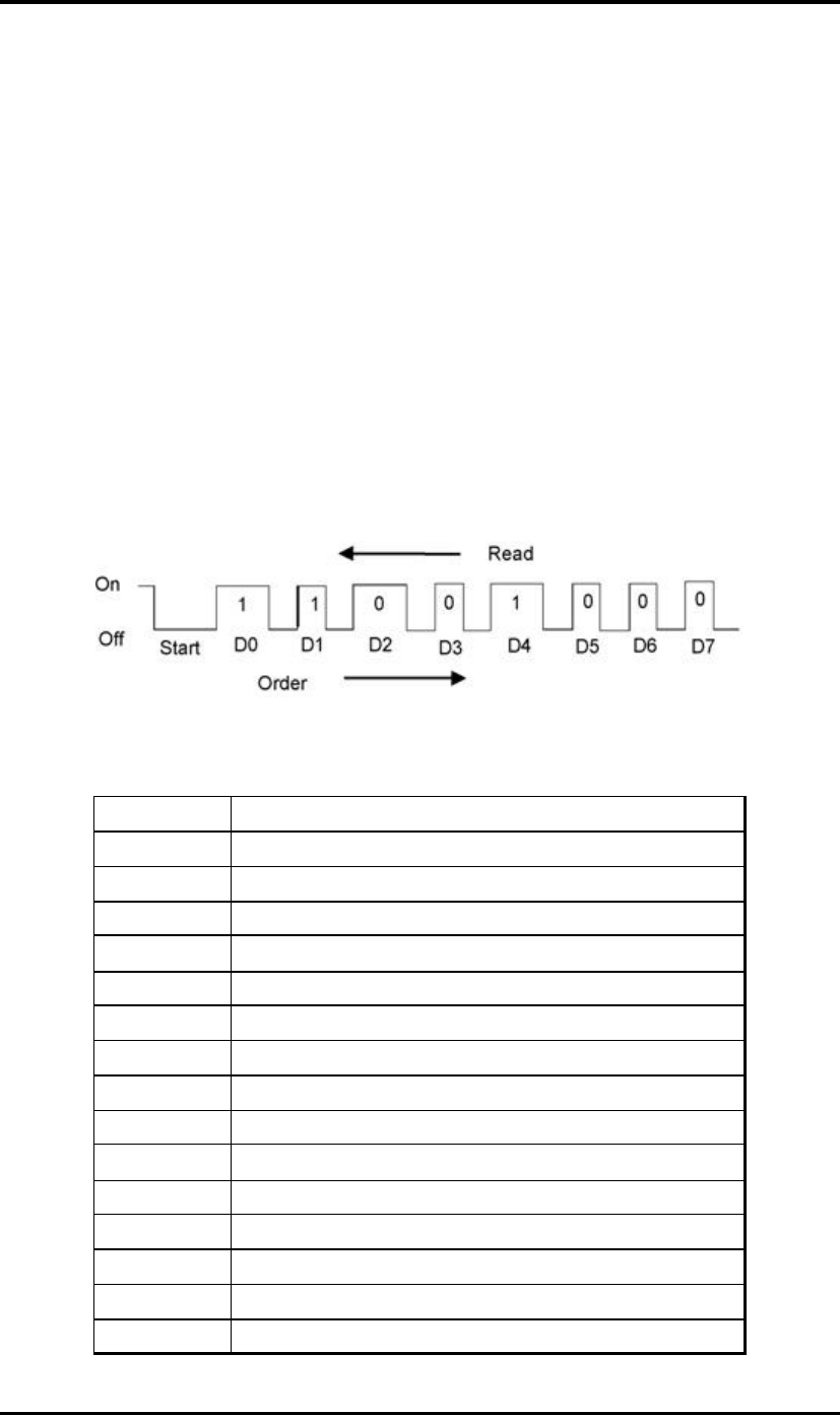 Interval between data bits Off for half second