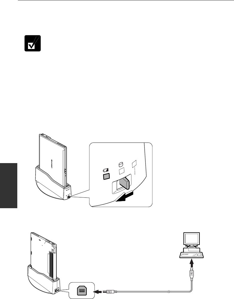 3. Connect the AC adapter to the connection cradle and insert the MM series into
