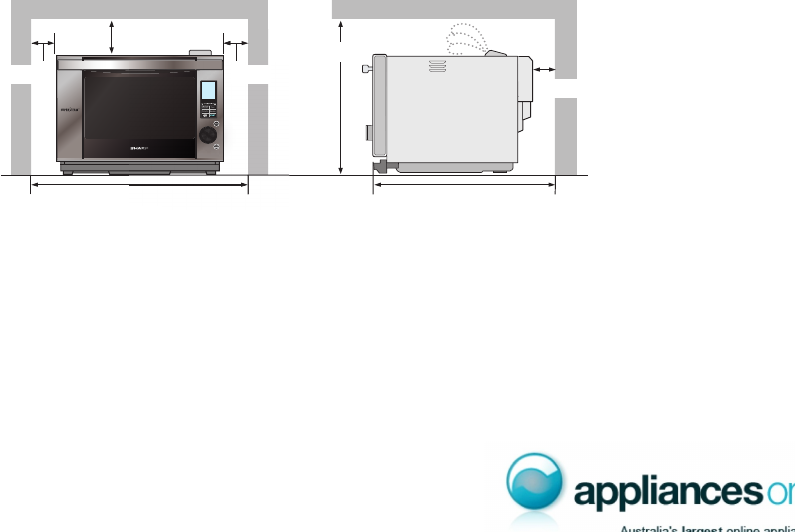 circulation. When installing in a cabinet, the minimum inside dimension of the cabinet should be 723mm(W) x