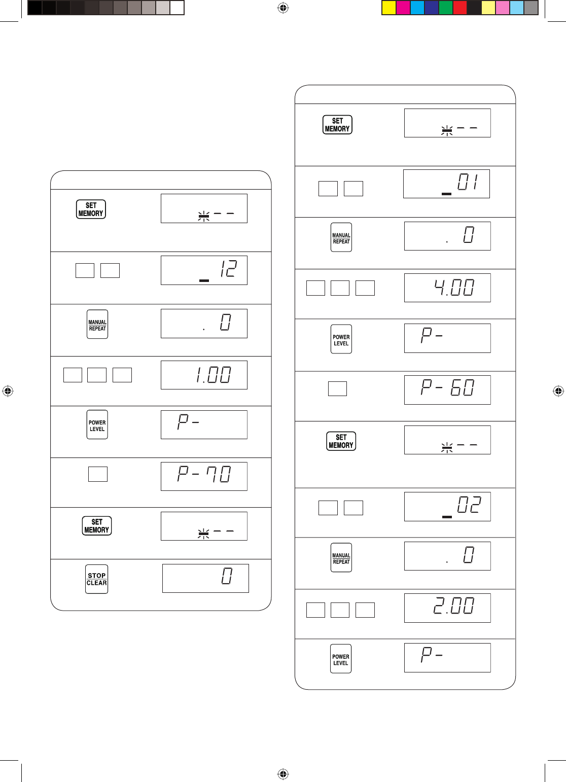 10 Enter cooking time for memory 2.