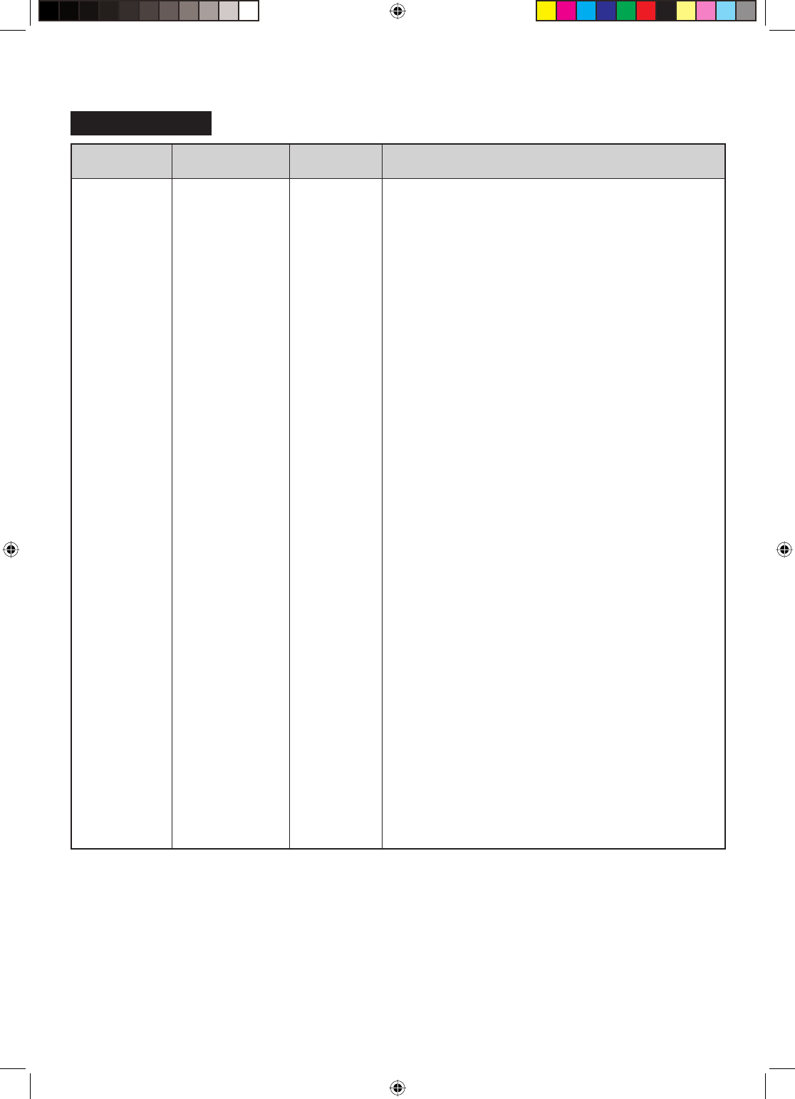 Defrosting Chart
