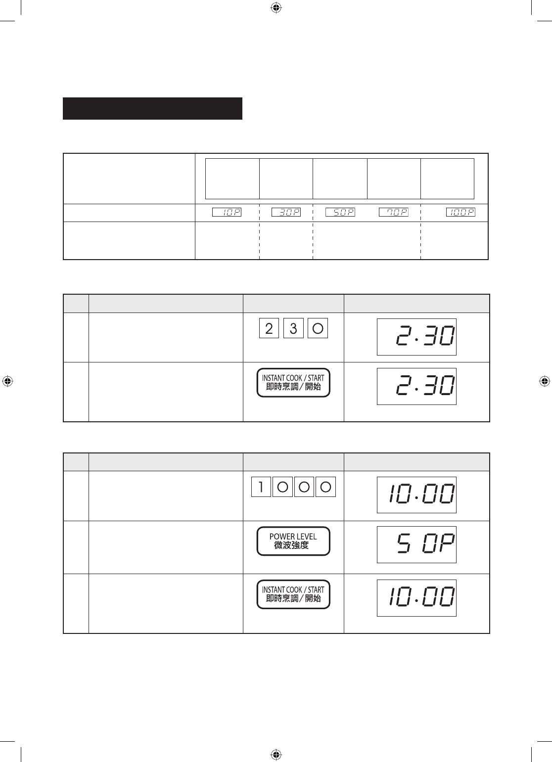 When cook under microwave manually, fi rst enter the cooking time, then the power level.