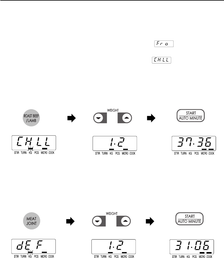 When cooking from chilled (5°C) press the desired menu key twice, will appear on the