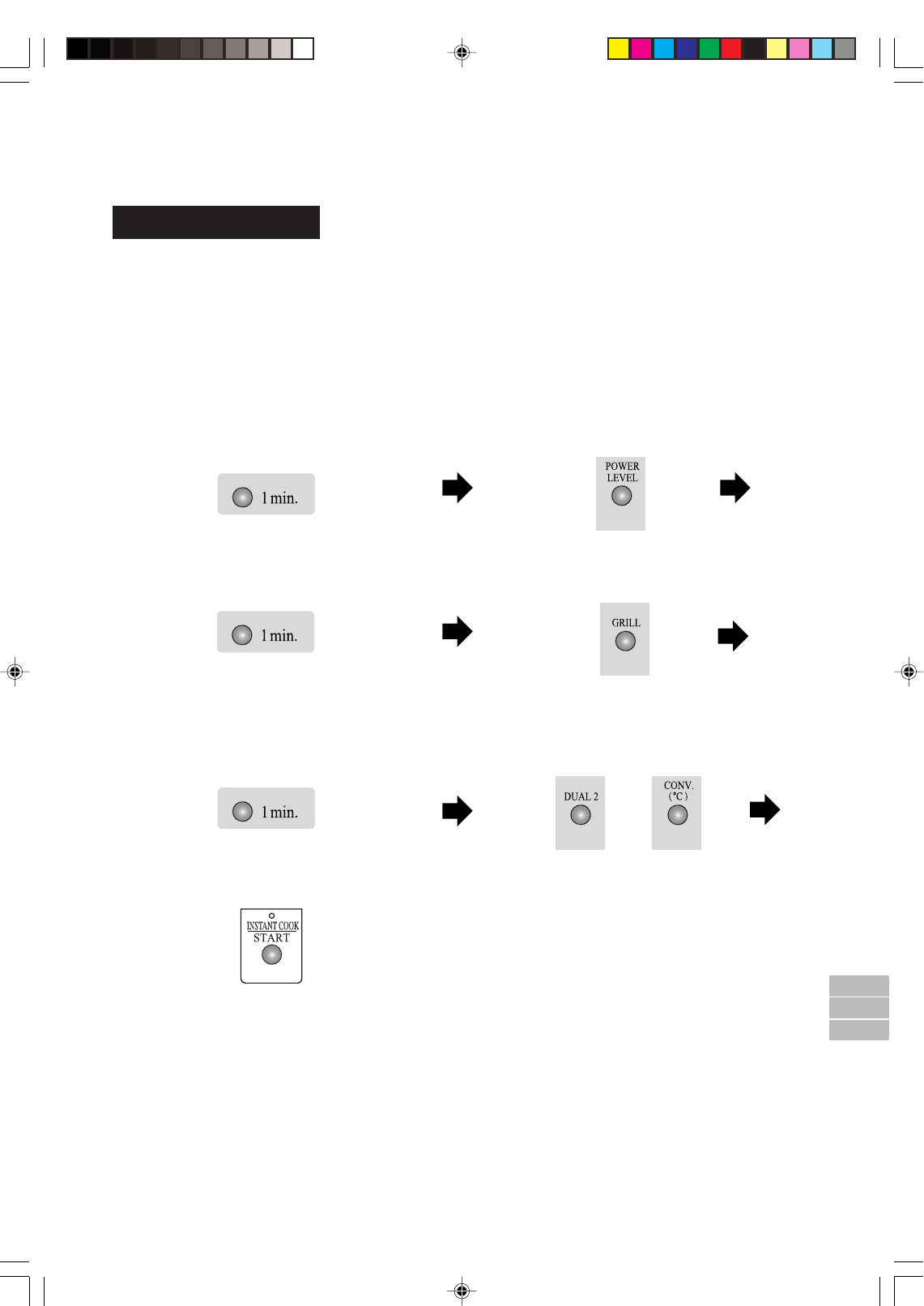1. Enter the cooking time by pressing the 1 MIN.