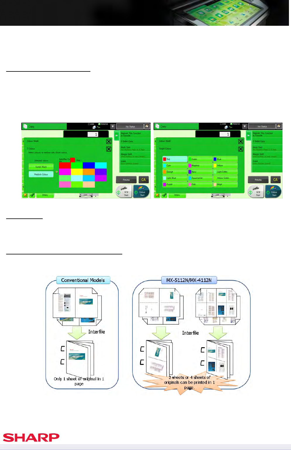 or 2-colour copy. In the case of 2-colour mode, they can choose not only extraction of red colour but also
