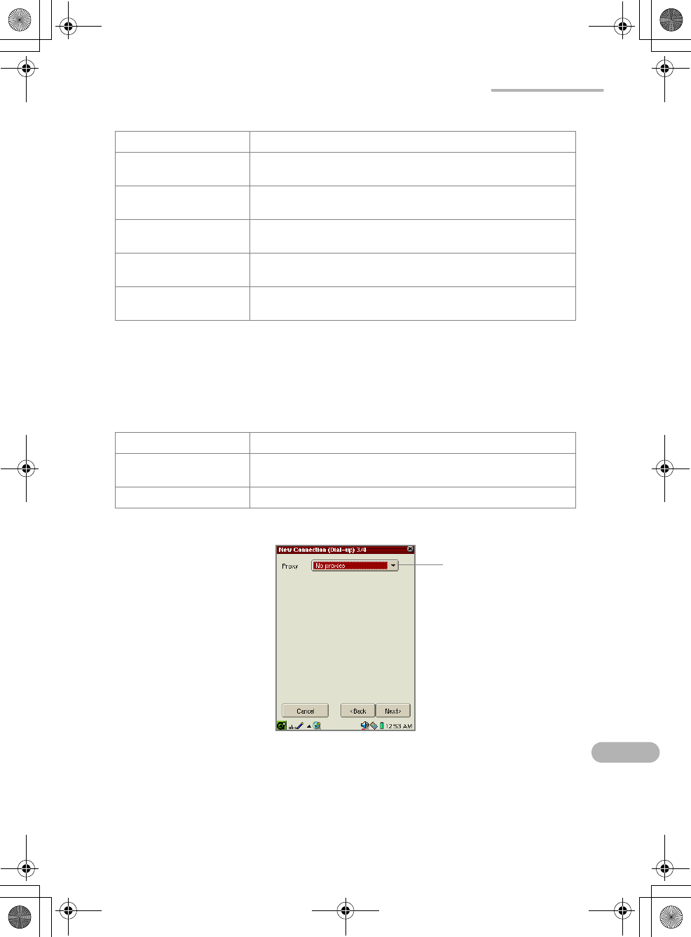 The next screen for the Proxy setting appears.