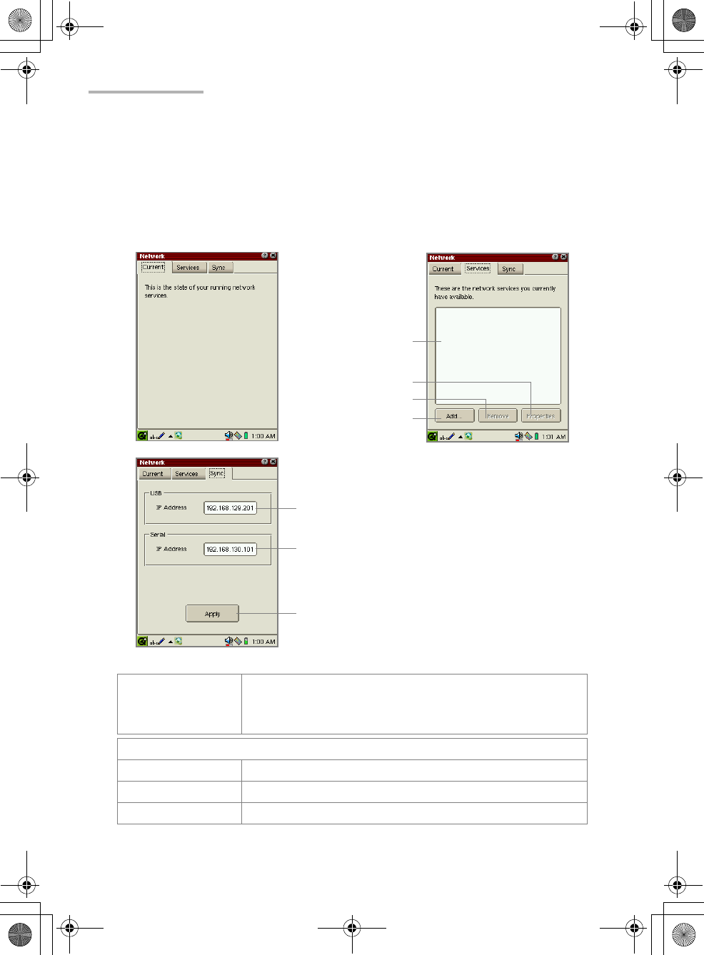 Network service list Lists all settings.