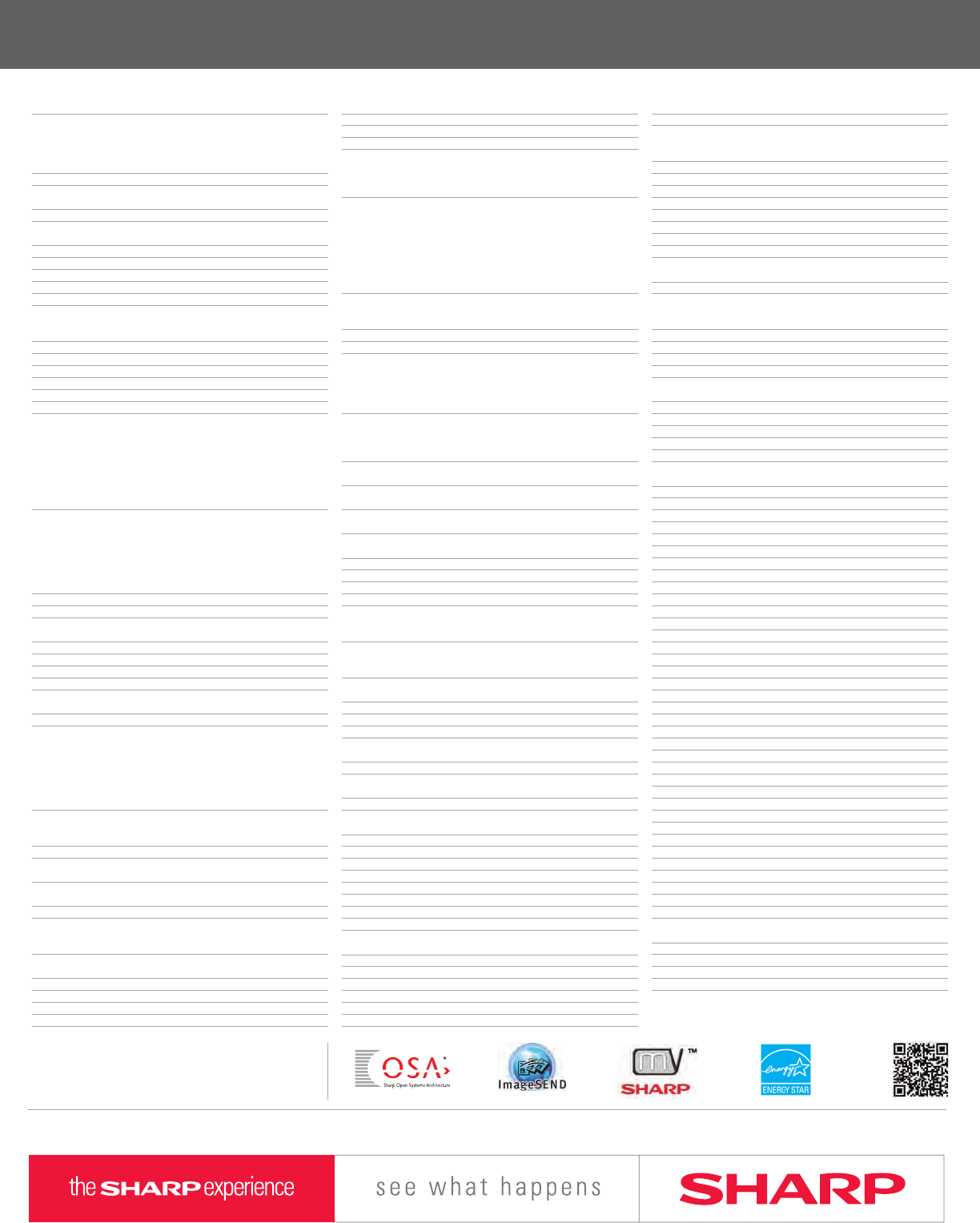 Design and specifications subject to change without notice. Sharp, Sharp OSA, Sharpdesk, My Sharp, and all related trademarks are trademarks or registered trademarks of Sharp Corporation and/or its affiliated companies.