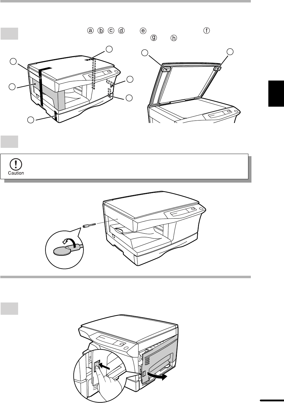 Remove pieces of tape , , , , and and protective cover . Then open the