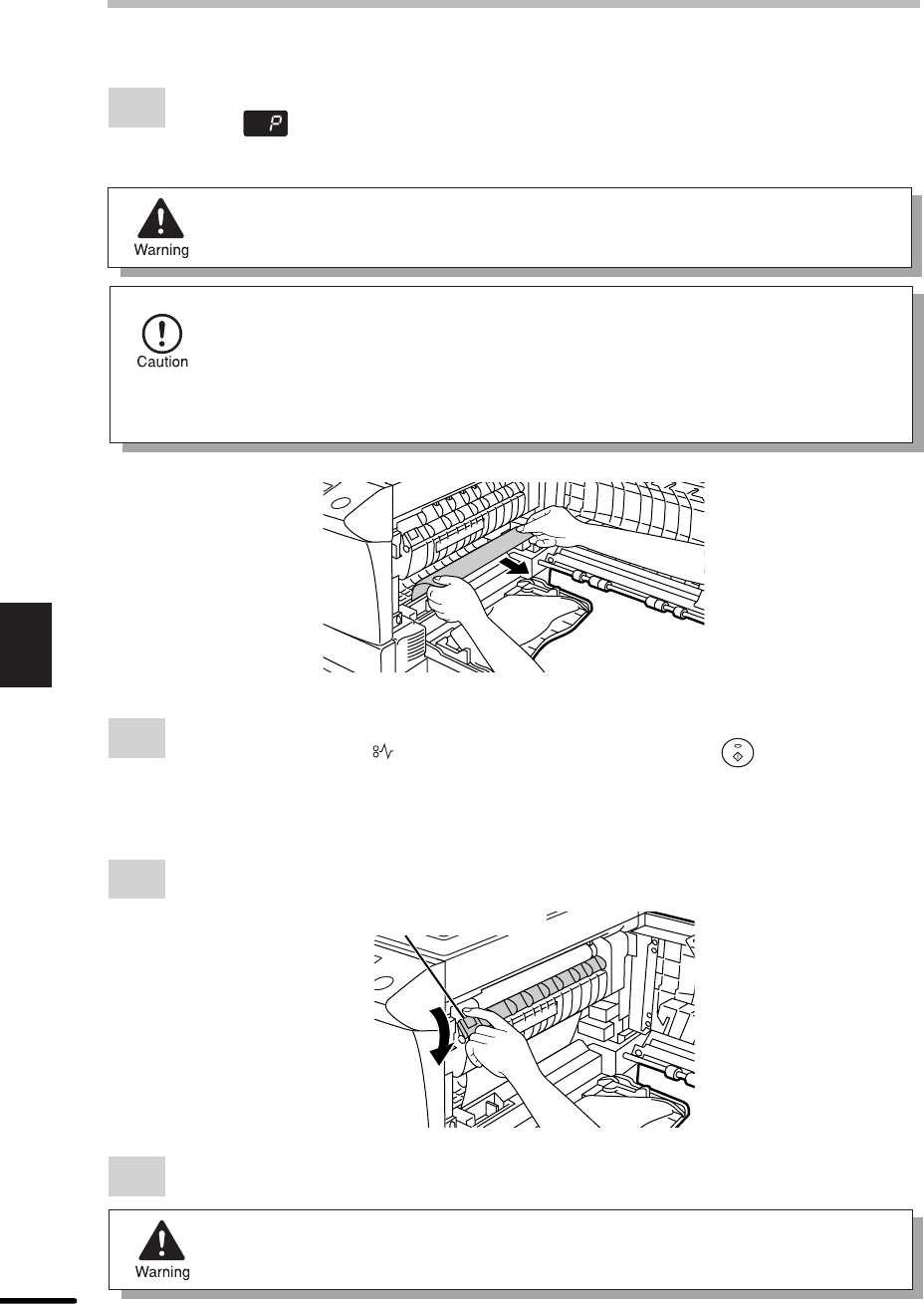 The fusing unit is hot. Do not touch the fusing unit when removing misfed