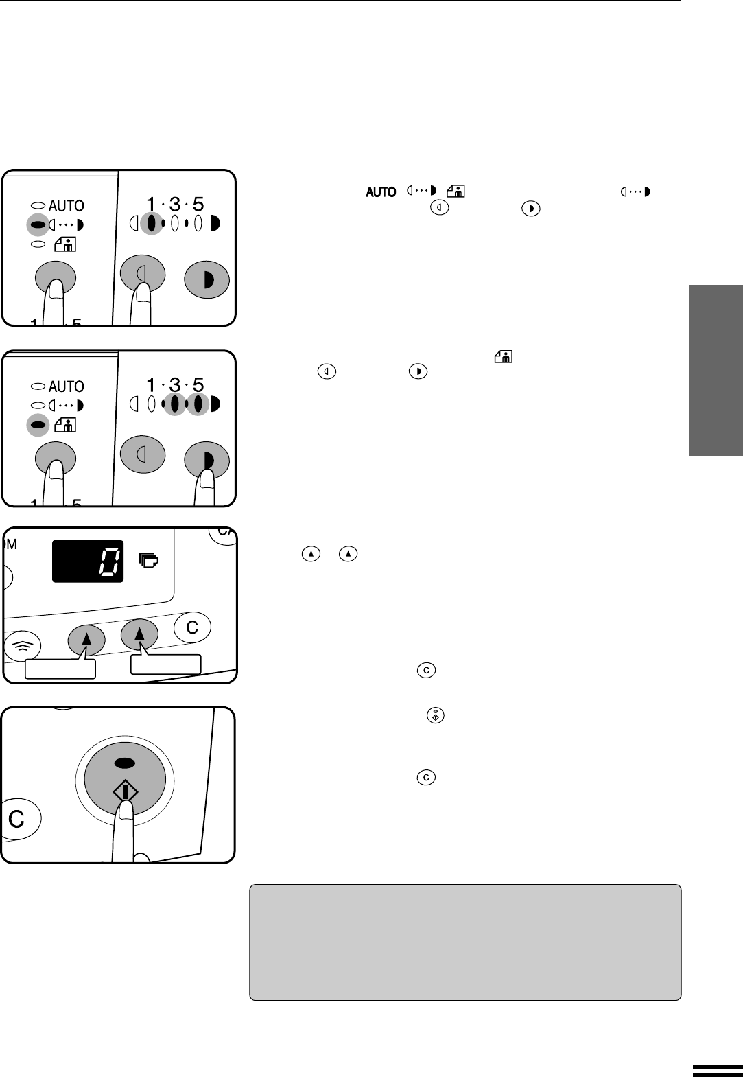 For manual copy density adjustment, press the AUTO/MANUAL/