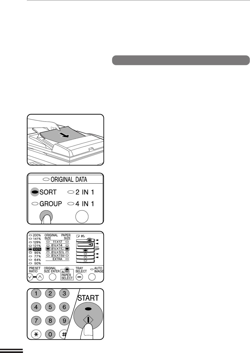 When copying in the sort mode, the original image will be stored in the copier