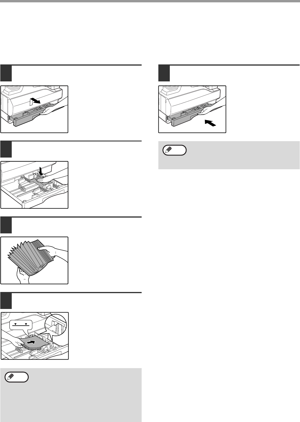 Make sure that the machine is not copying or printing, and then follow these steps to load paper.