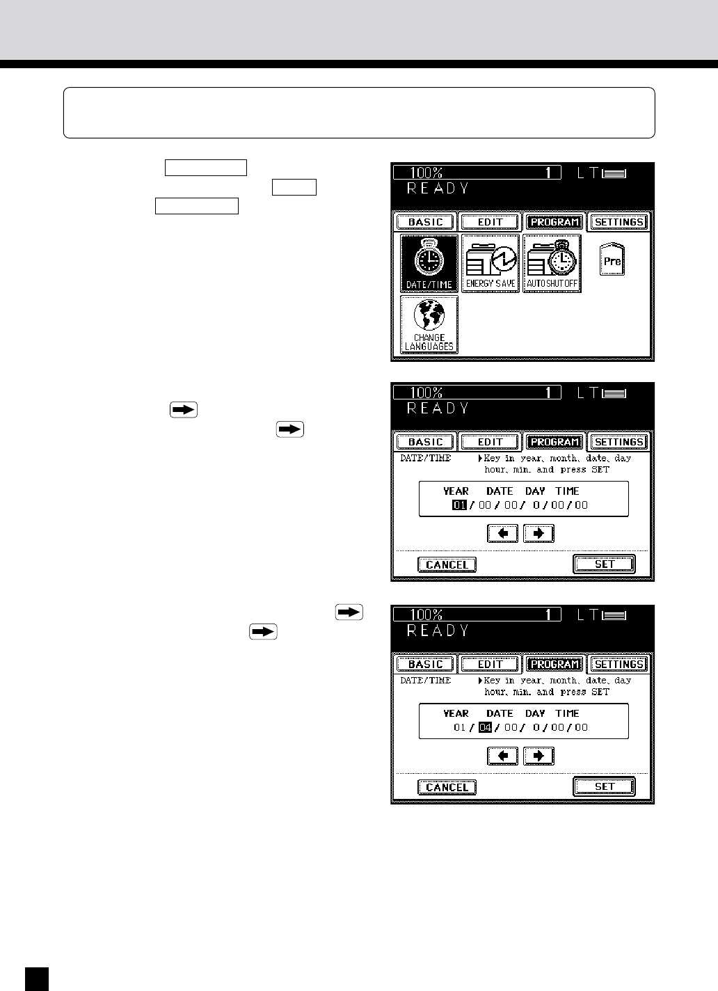 Dates and times can easily be set in the PROGRAM menu by entering the appropriate numbers