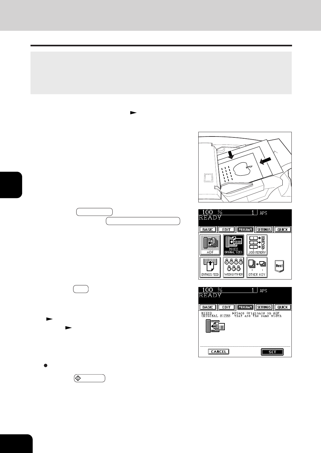 menu, and press the MIXED ORIGINAL SIZES key.