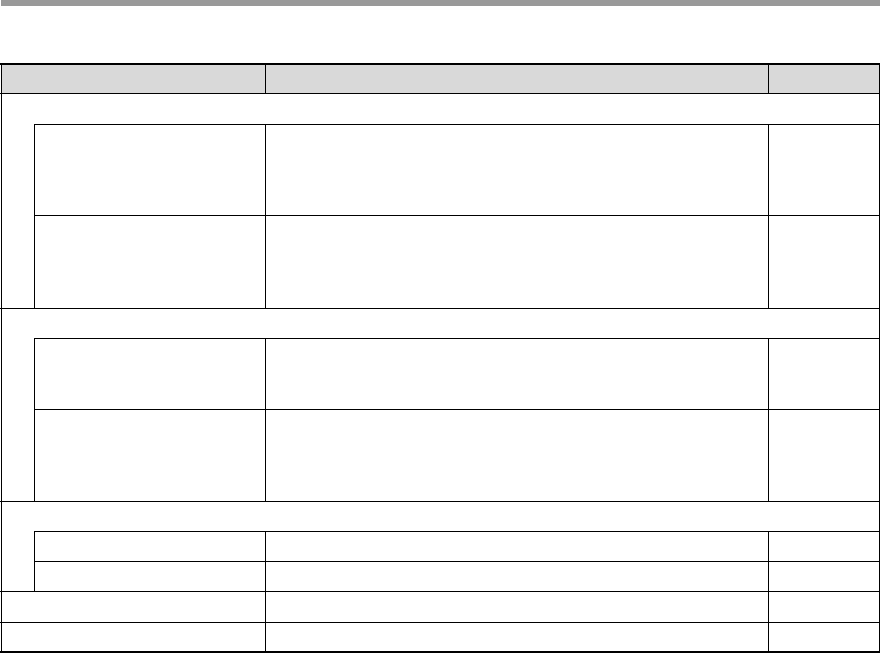 Menu item Settings (factory default setting appears in bold) Page