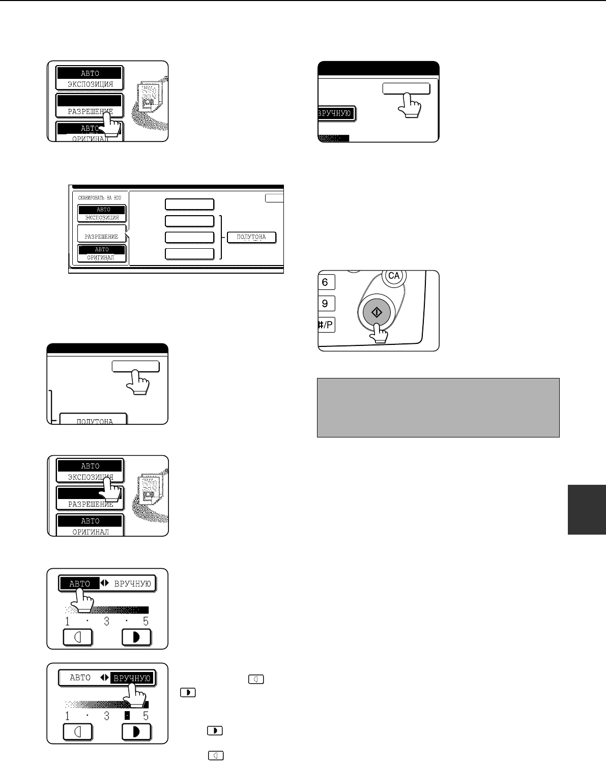Приêоснитесь ê êнопêе [Авто] или [Врóчнóю].